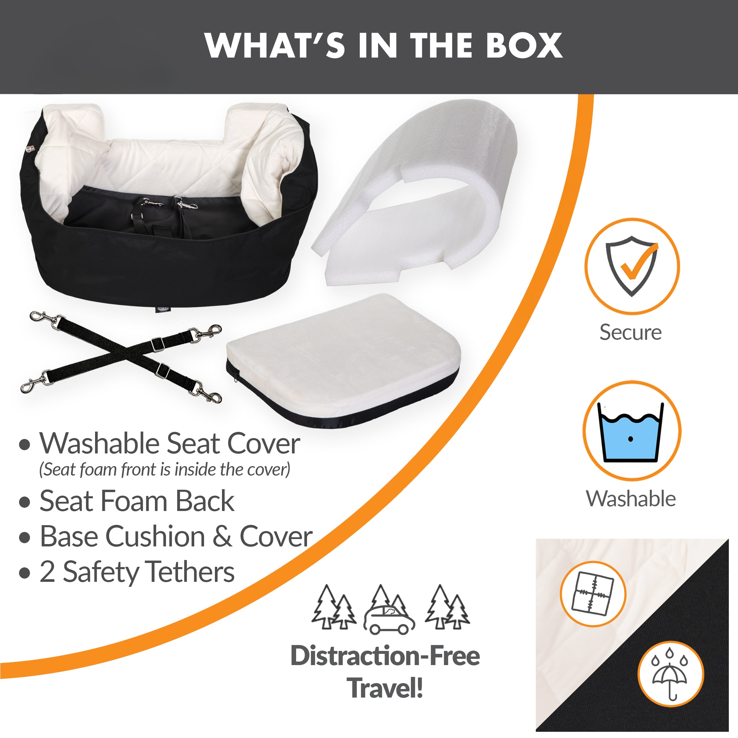 Collapsible booster pet car seat elevates pet(s) for a better view, while the firm foam bolster around the edge keeps them in a warm, safe and controlled spot for a distraction-free drive