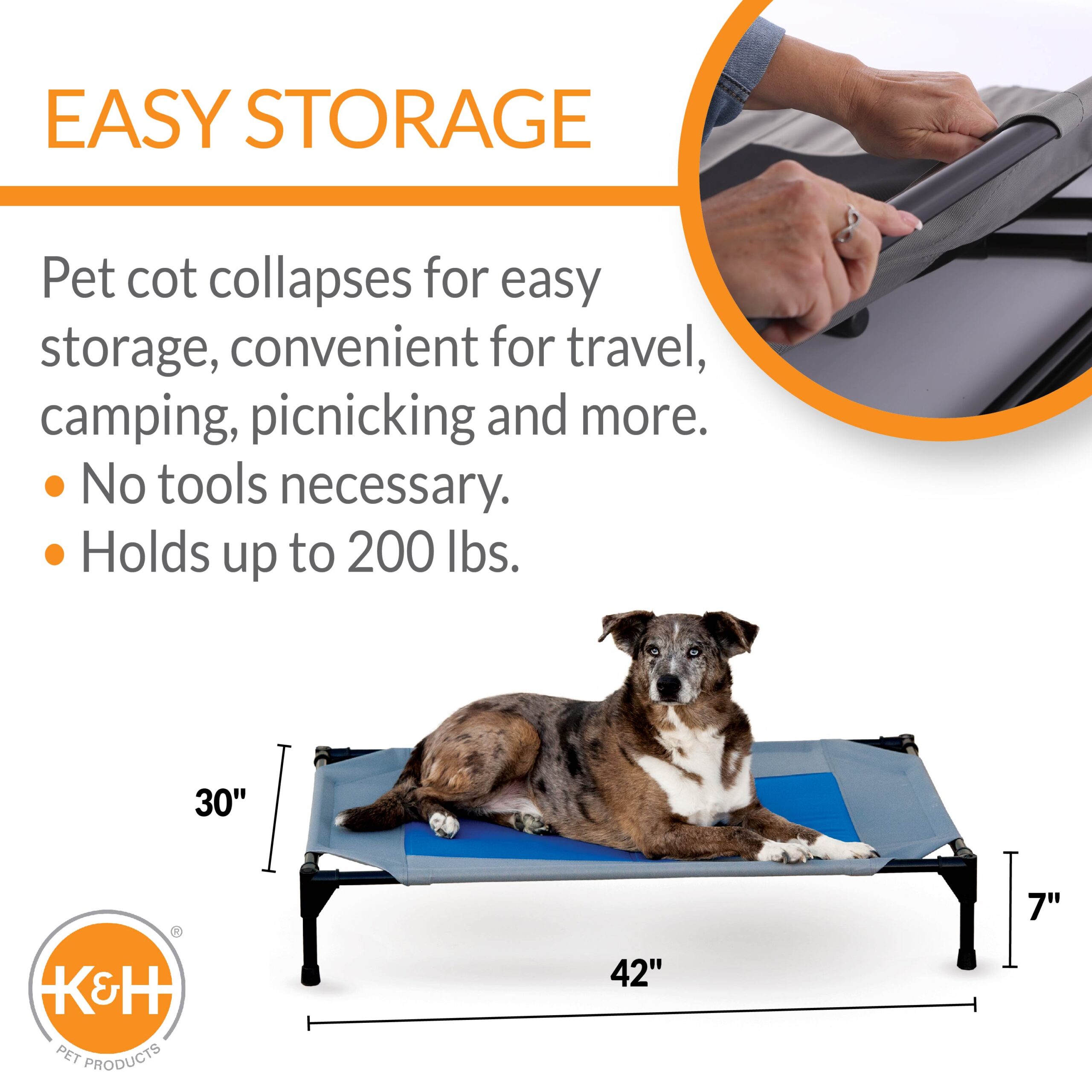 Easy to assemble and disassemble, no tools necessary making this bed great  for use during travel, camping, picnicking and more