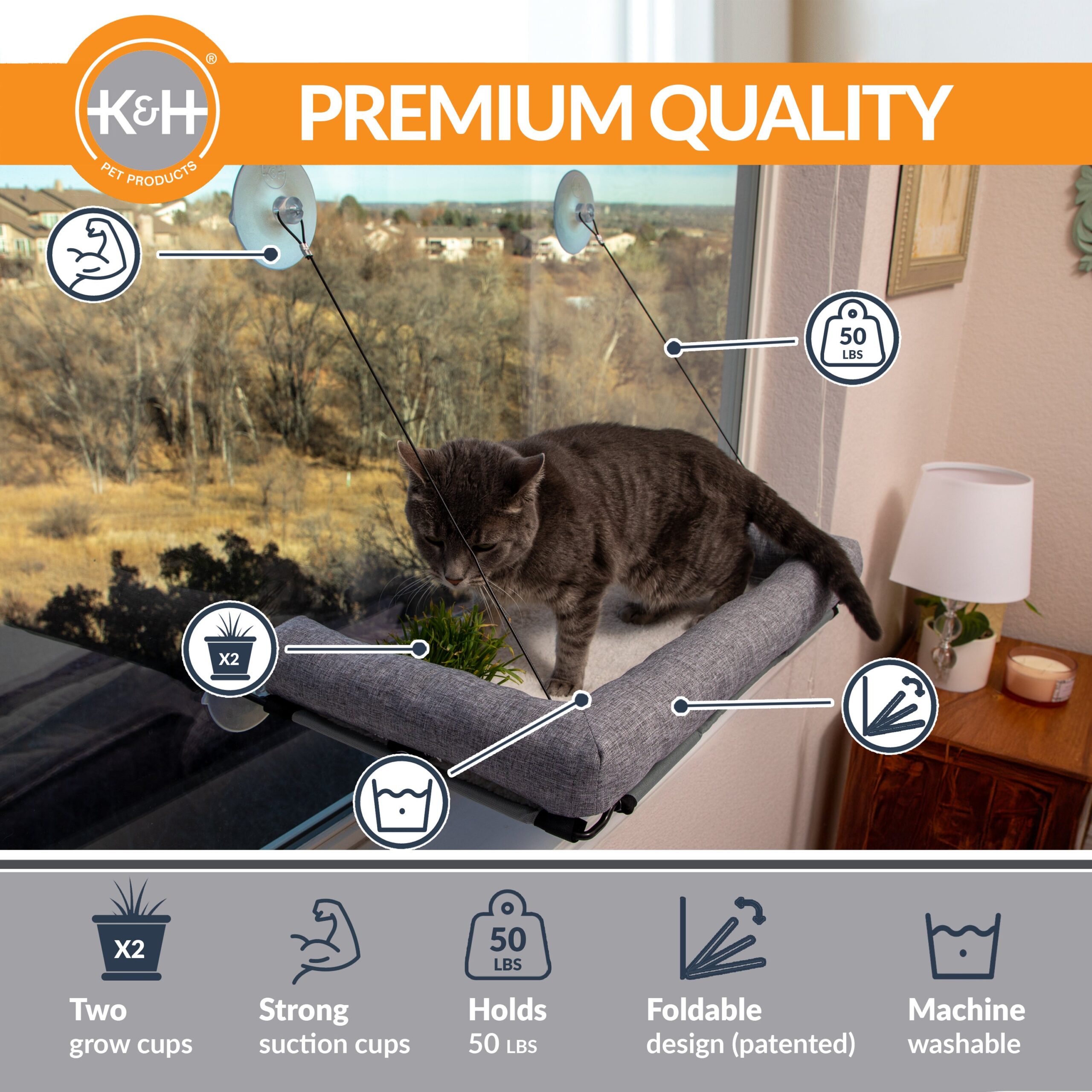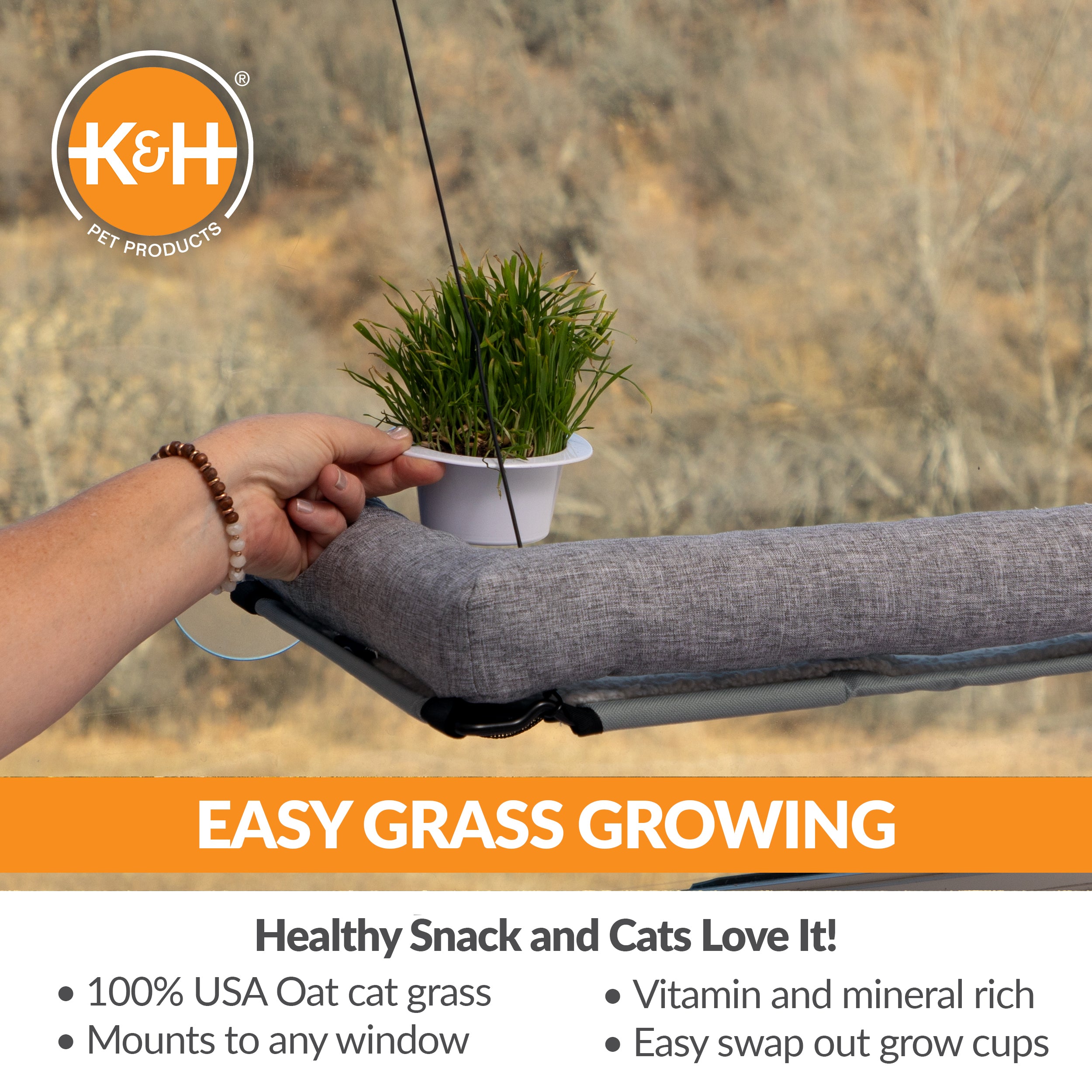 K&H EZ Mount Deluxe Bolstered Window Kitty Sill Cat Perch with Cat Grass Grow Station