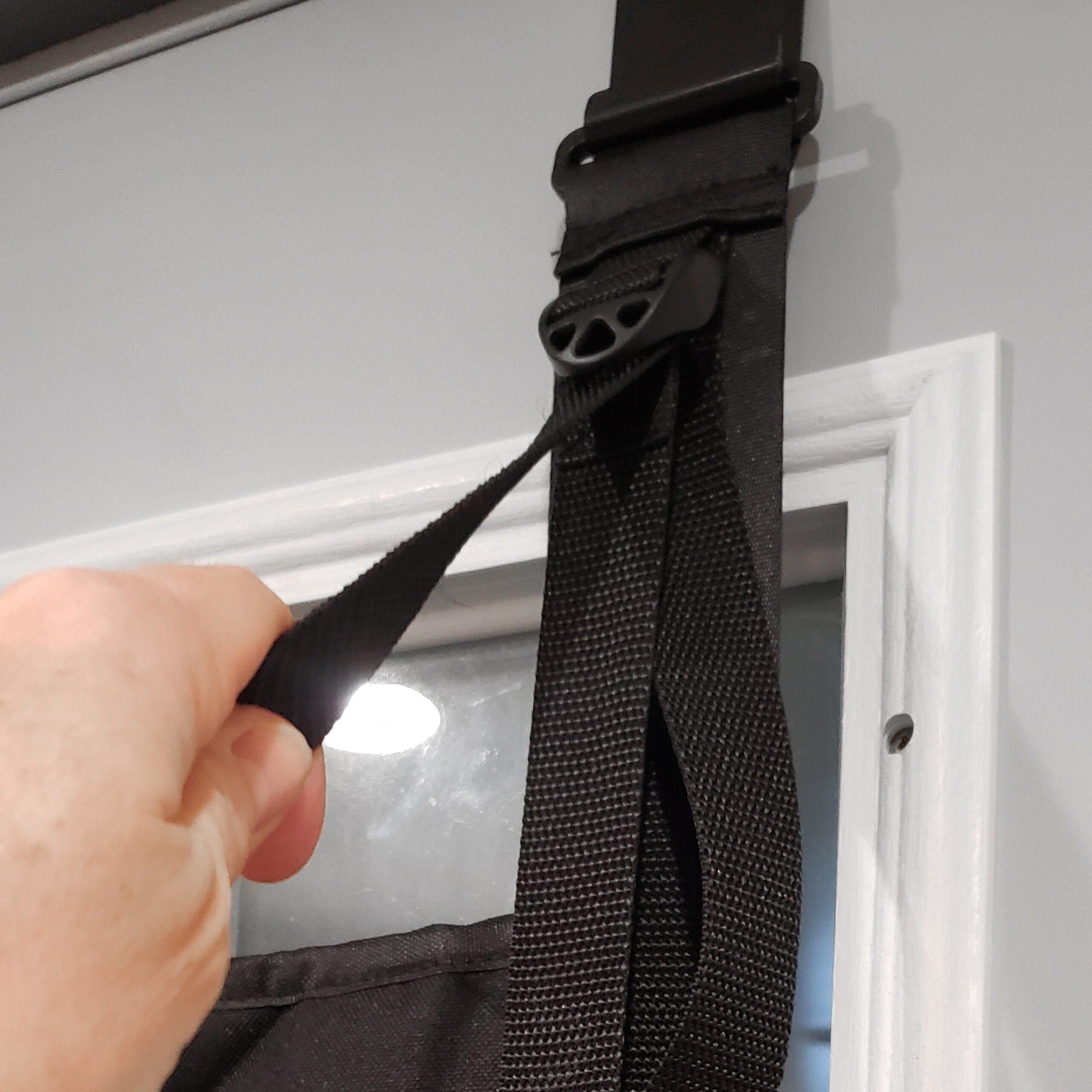 Unique design allows the entire unit to be folded flat against the door without removing it