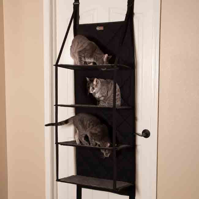 The perfect solution to floor space hogging heavy cat furniture. This cat tree has multiple levels that can accommodate multiple cats and can hold up to 50 pounds