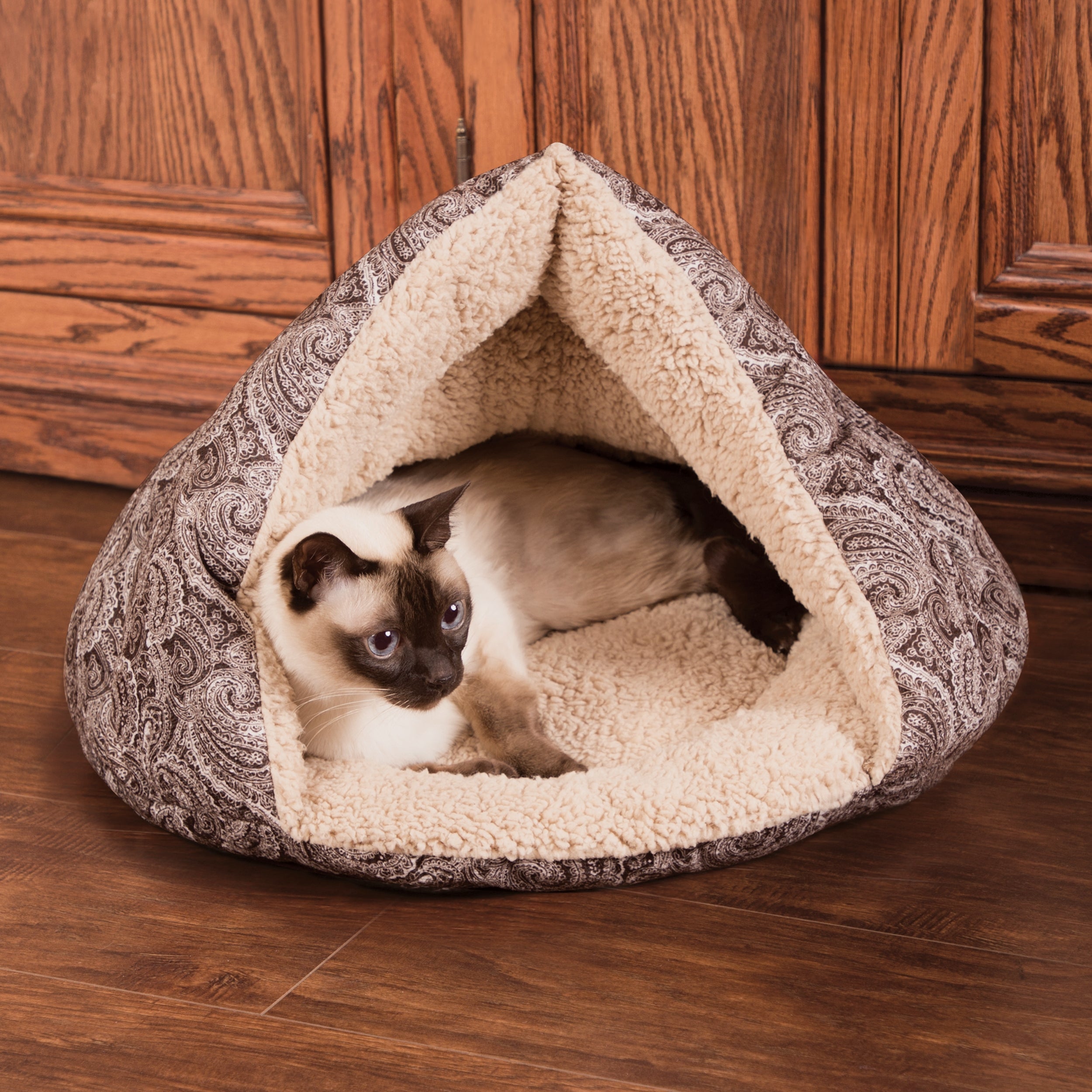 Cat cave’s self-warming material captures your pet’s body heat and radiates the warmth back to your dog or cat for a cozy resting spot