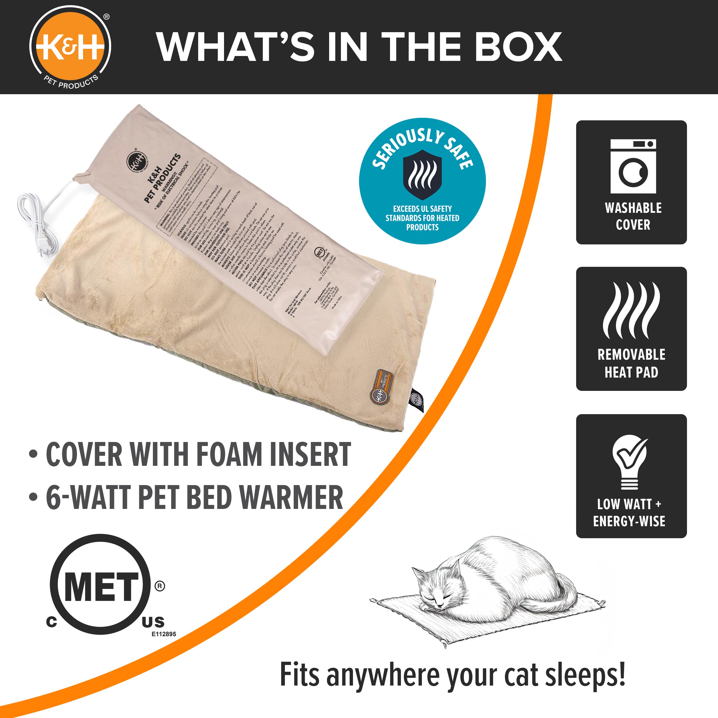 Heated cat bed is thermostatically controlled to automatically warm the sleeping surface to your pet’s normal body temperature only when your pet is in the bed