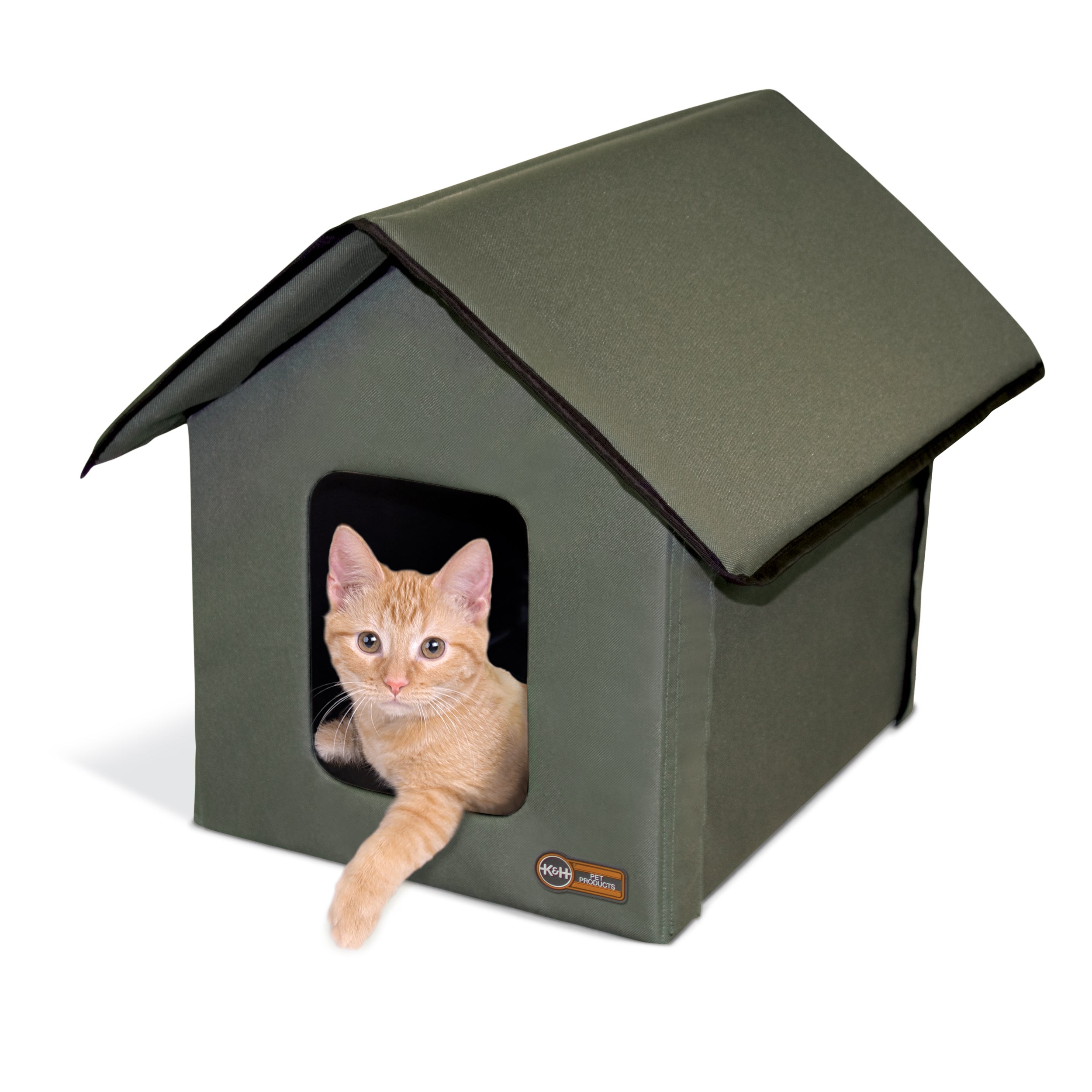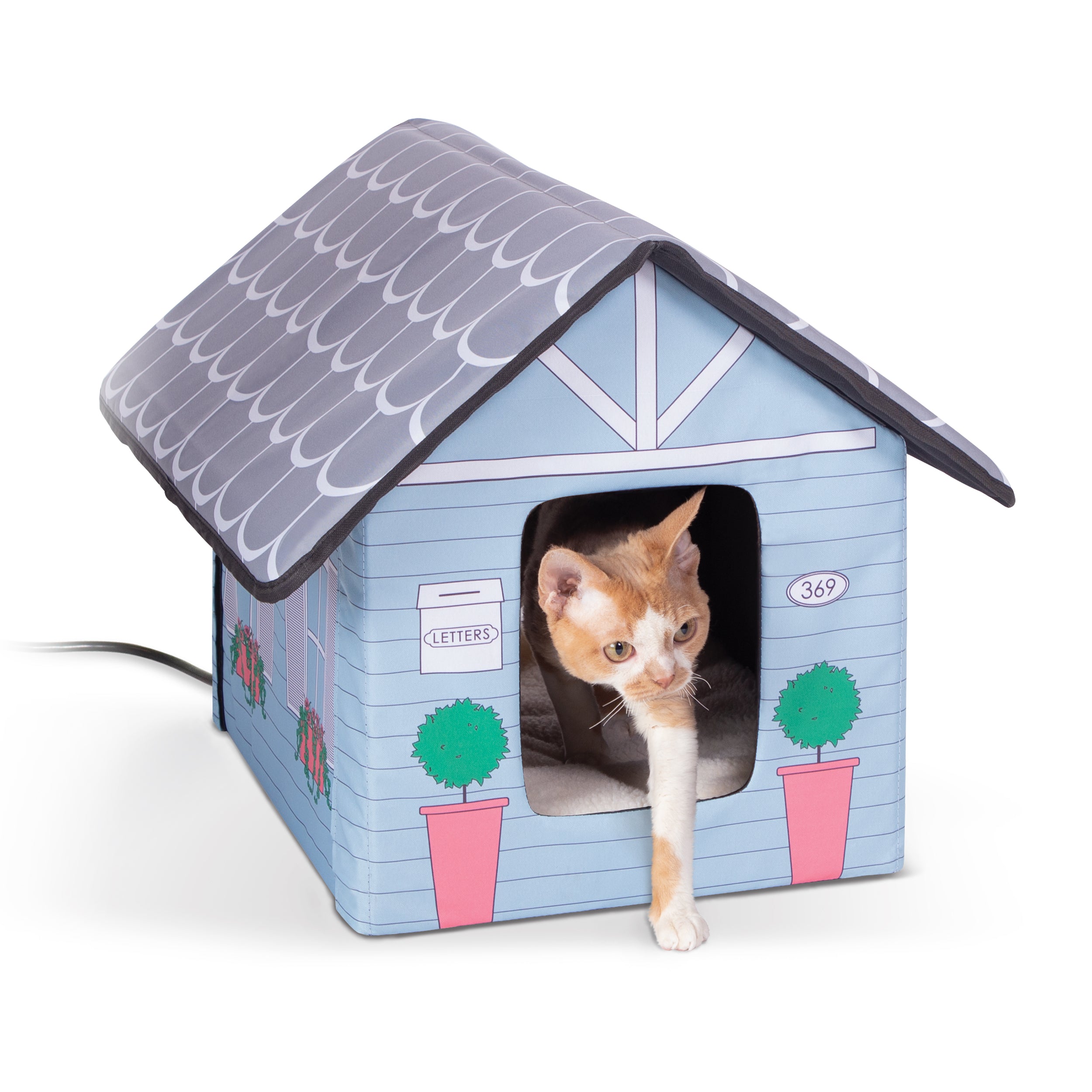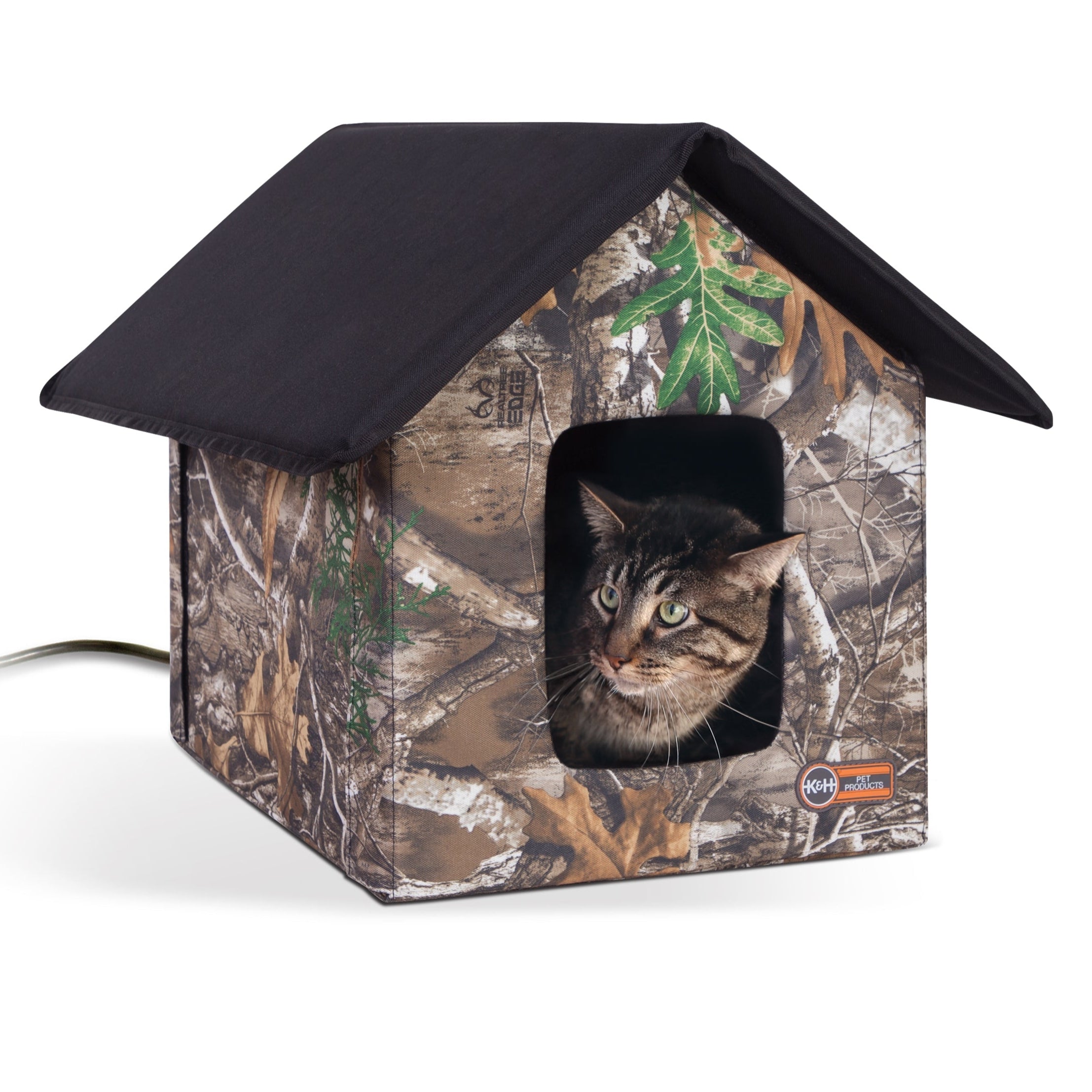 Perfect winter cat house for outside cats that prefer to sleep in garages, porches, barns, or even in colder parts of the house providing a nice cat cave with a cat warming pad inside