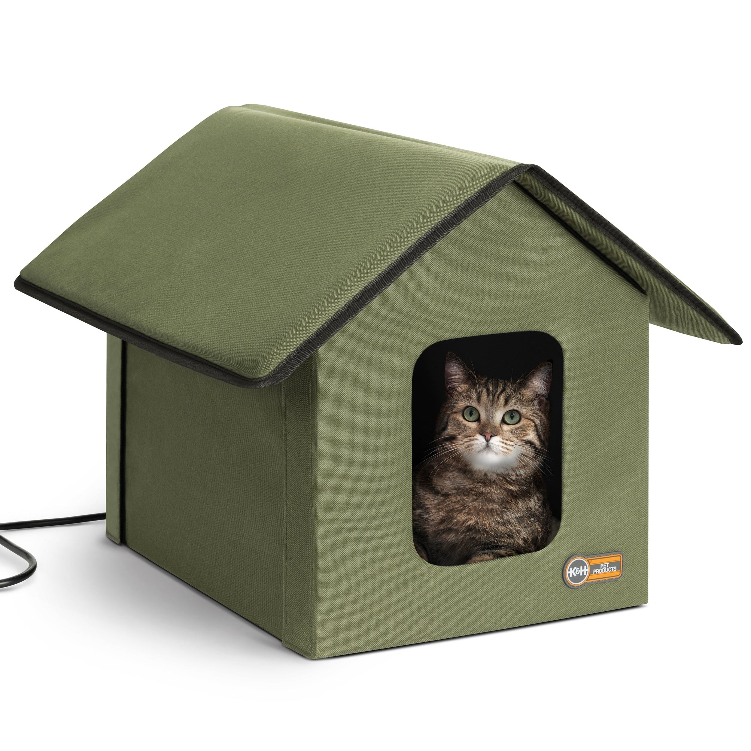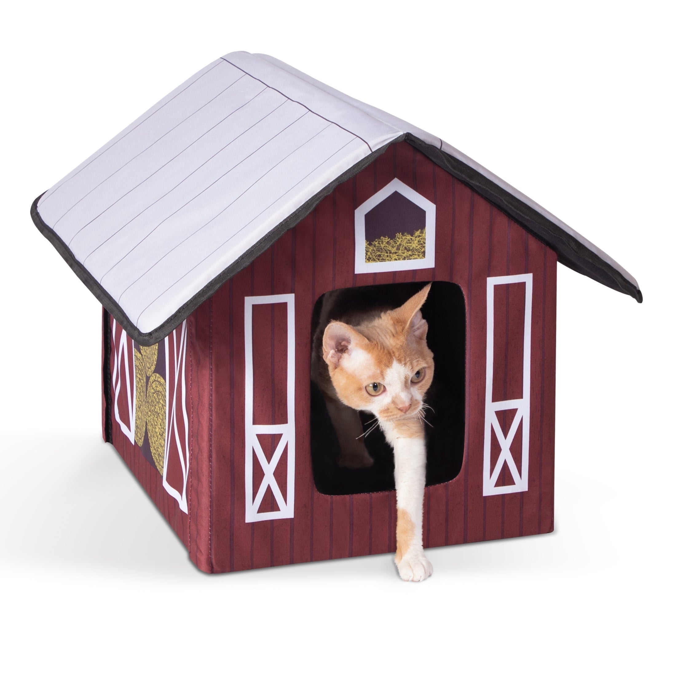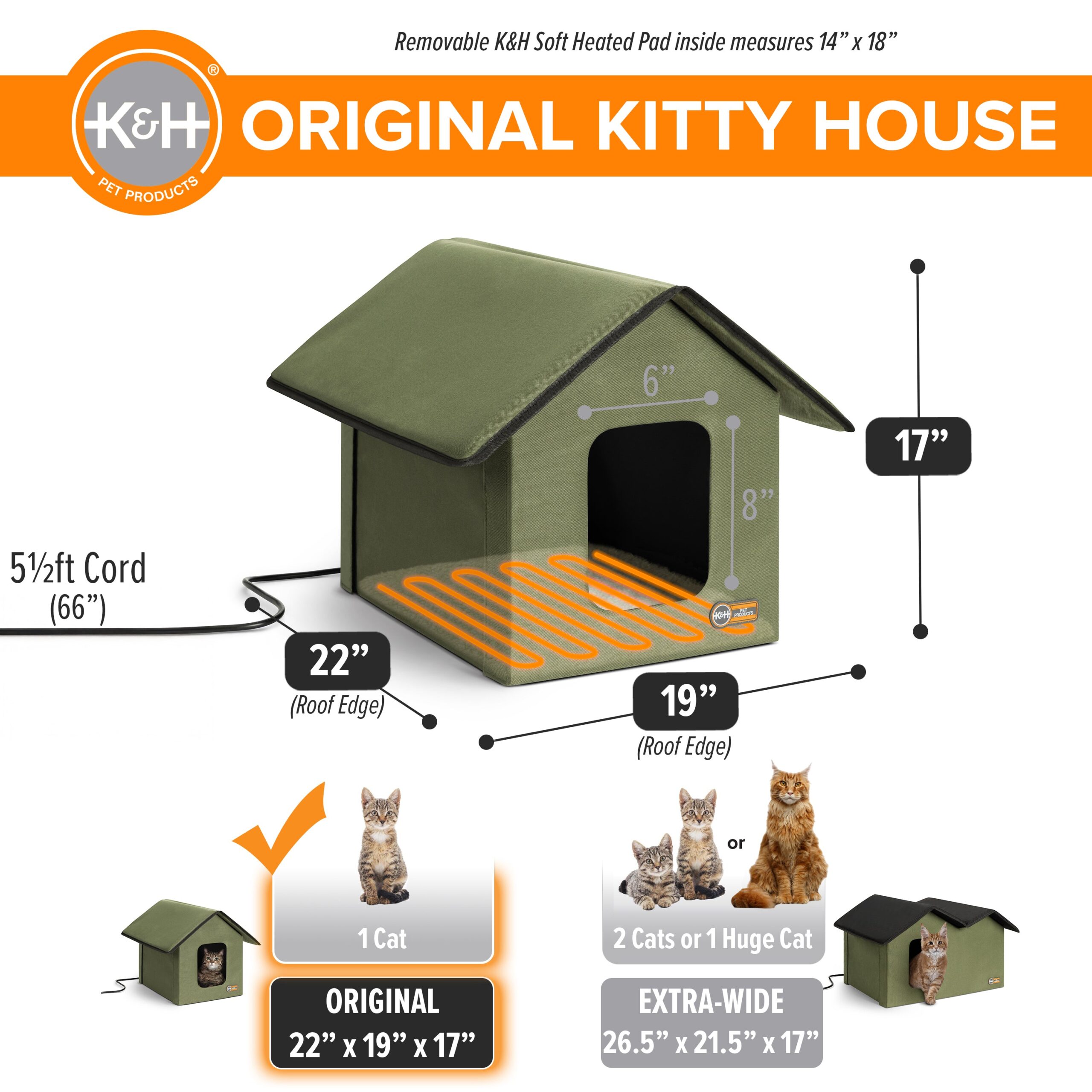 Perfect winter cat house for outside cats that prefer to sleep in garages, porches, barns, or even in colder parts of the house providing a nice cat cave with a cat warming pad inside