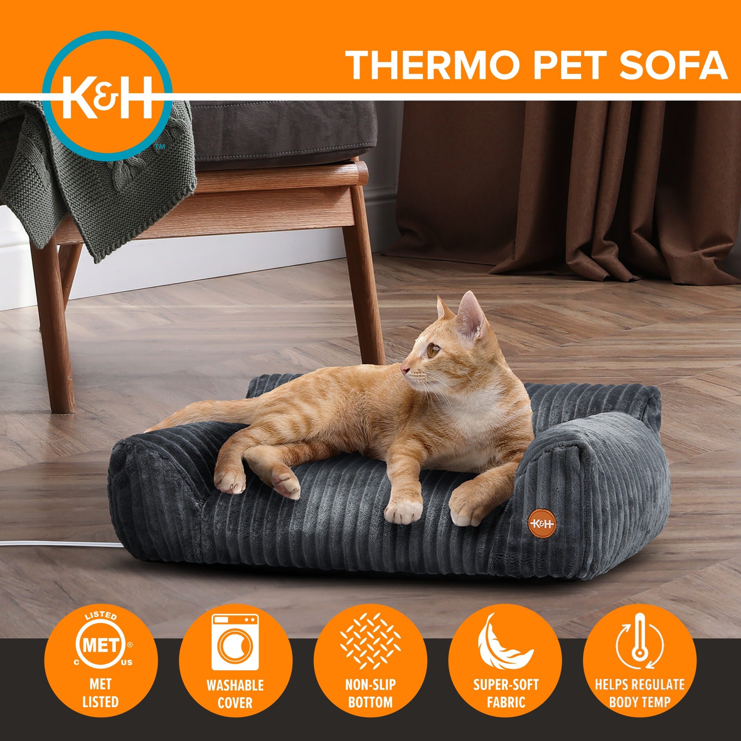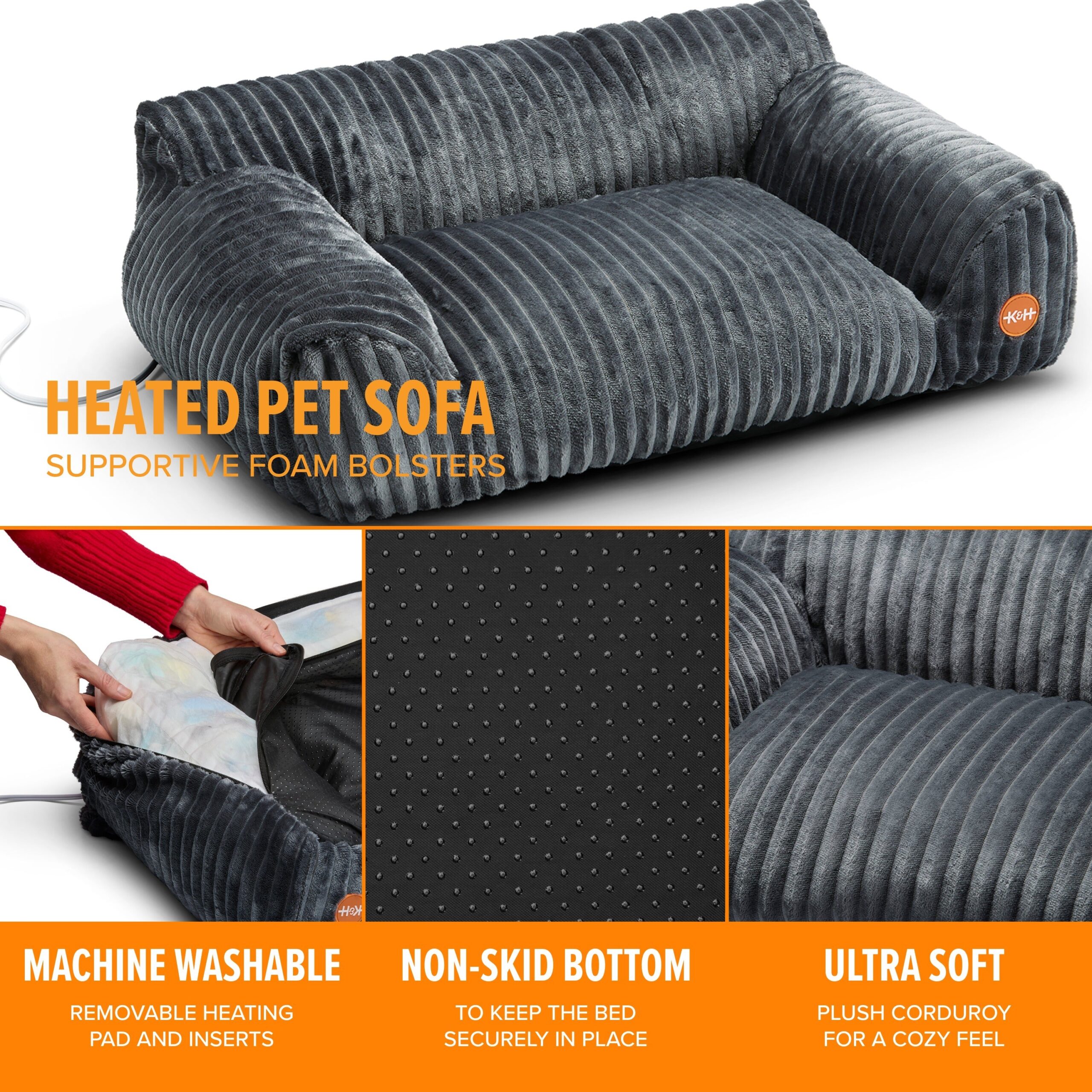 Designed with supportive orthopedic chopped foam fill, this heated sofa-style pet bed helps relieve pressure on joints while plush bolsters cradle your pet’s head and neck, providing enhanced joint support, pressure relief, and soothing warmth for cats and dogs